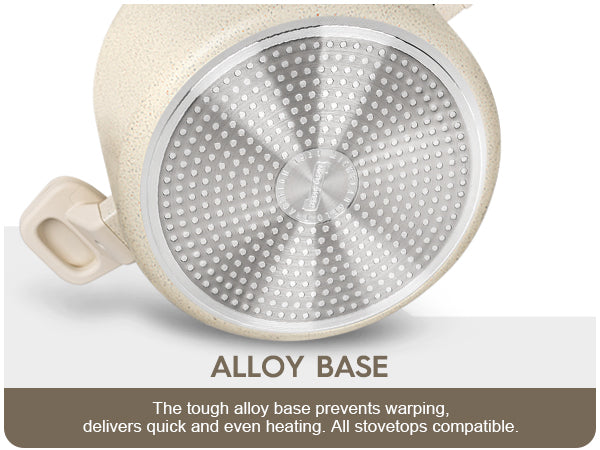 This pot's durable 3-layer base and high-grade aluminum body provide improved heat distribution and warp resistance for an unparalleled cooking experience.