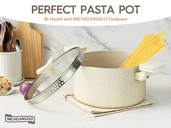 MICHELANGELO Pasta Pot with Strainer Lid, 6 Quart Multipurpose Pot with Twist and Lock Handles