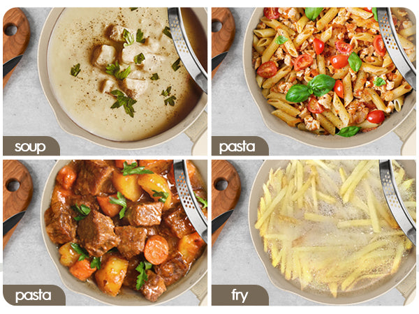 • ULTRA NONSTICK PERFORMANCE - Our pasta pot with lid is made of natural granite coating, which is 100% free of APEO and PFOA, safe and healthy. It can keep you far away from stickiness on the stock pot. Cleaning is just a breeze for this cooking pot.