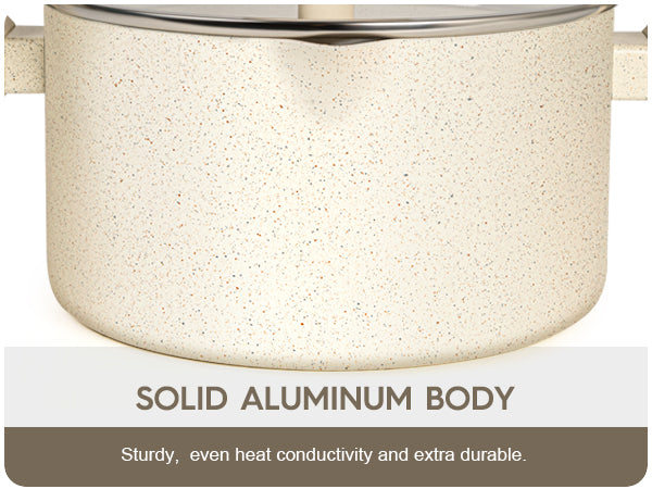 • HEATS QUICKLY & EVENLY - This cooking pot is made of solid aluminum, ensuring even heat conduction and distribution all around with no hot spots. Compatible with all stovetops, including induction, gas, electric, ceramic, halogen, etc.