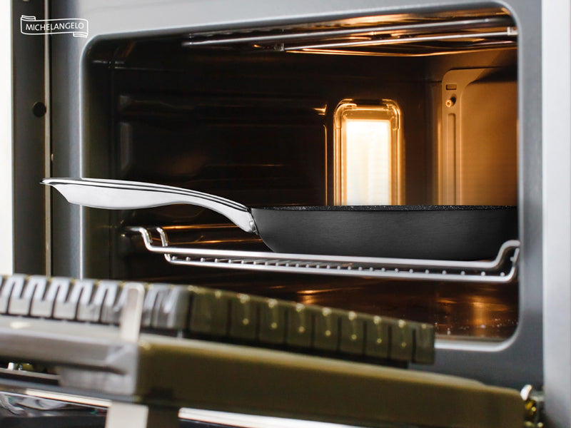Hard anodized pots and pans come with stainless steel handles that won’t melt in high heat. They’re also easy to grip, even when wearing oven mitts. These pots and pans can be used at any temperature-from the stovetop to the oven. And with proper care, they won't warp or scratch.
