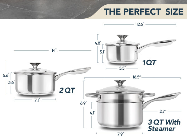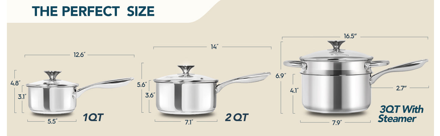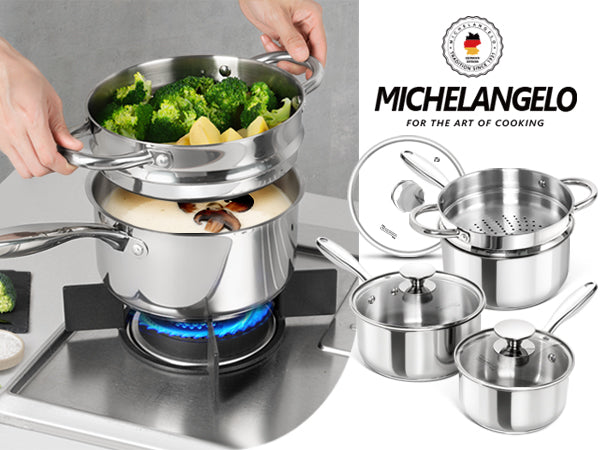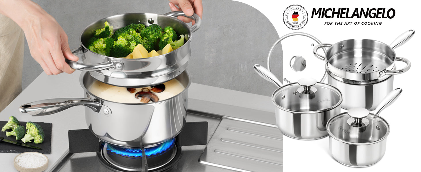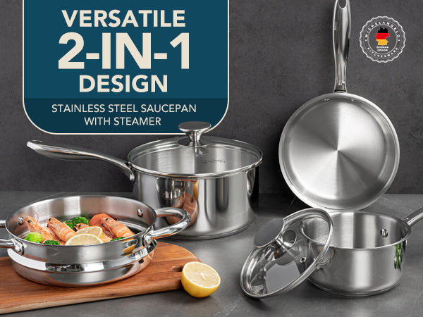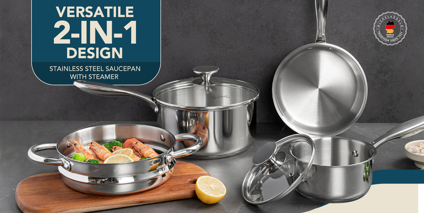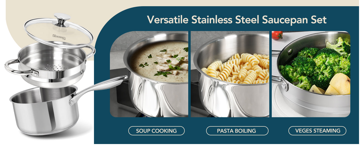 MICHELANGELO 1 & 2 & 3 Quart Stainless Steel Saucepan with Lid & Steamer