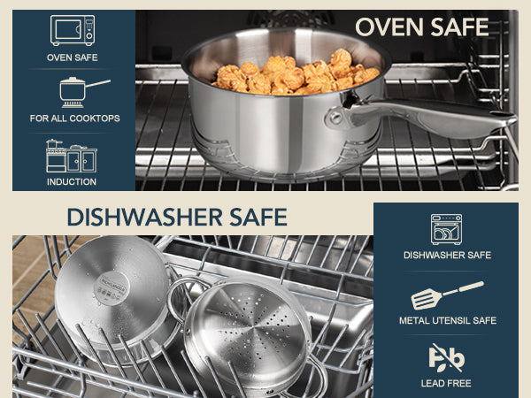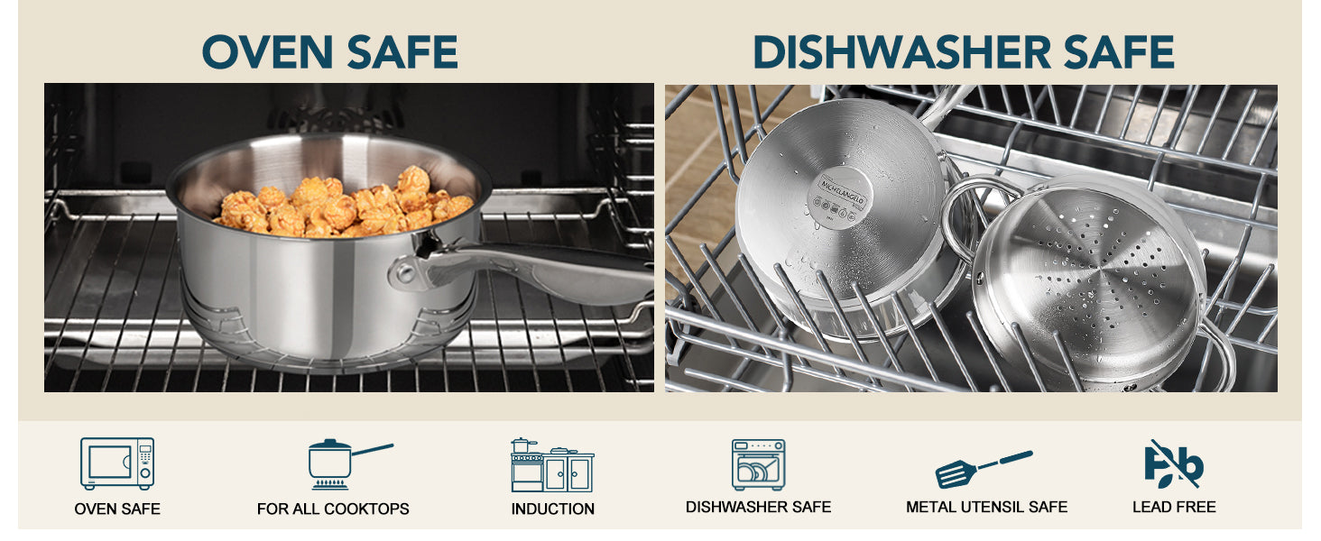 • Durable Stainless Steel: Constructed with food-grade 304 stainless steel with a triple bottom, this sauce pot is designed to be long-lasting and are compatible with all types of stovetops, including induction. Meanwhile, the structure ensures efficient and even heat distribution over the entire cooking surface.