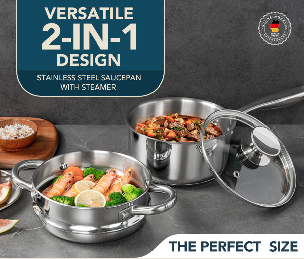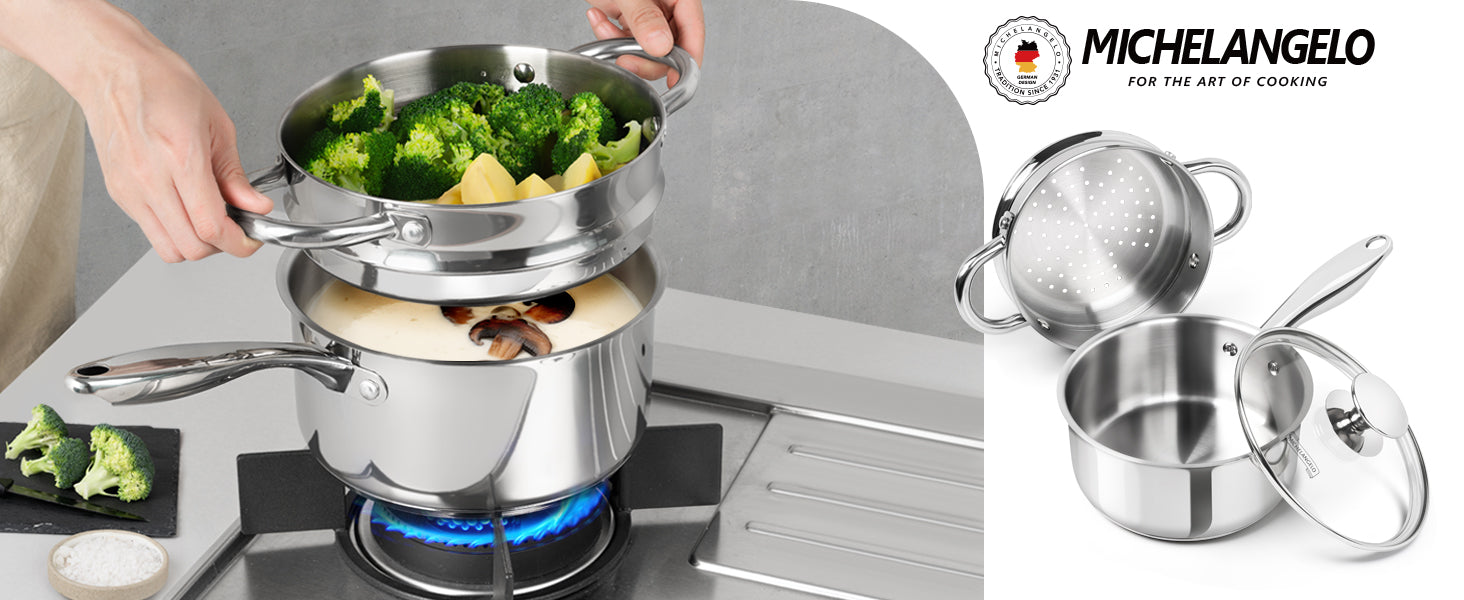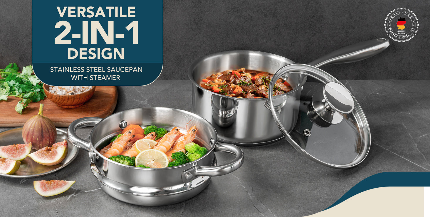 MICHELANGELO 1.5 Quart Stainless Steel Saucepan with Lid & Steamer