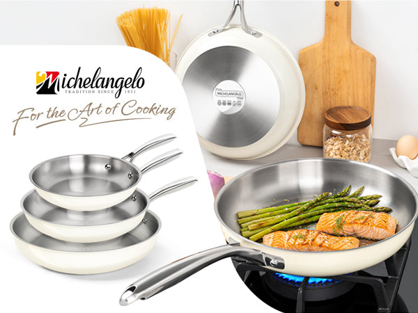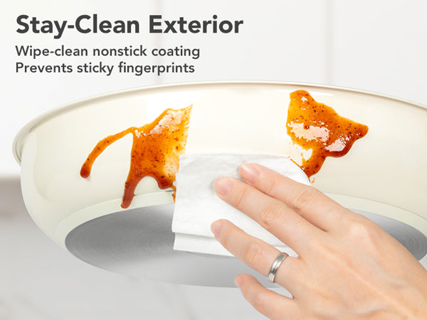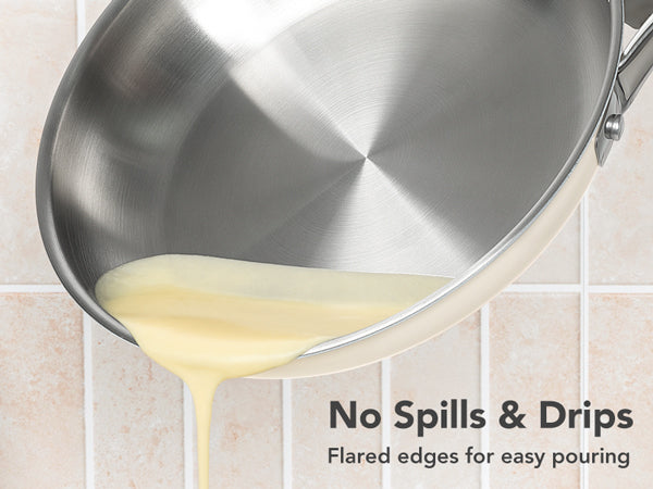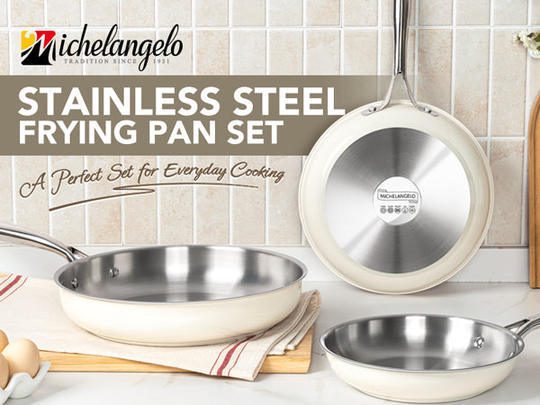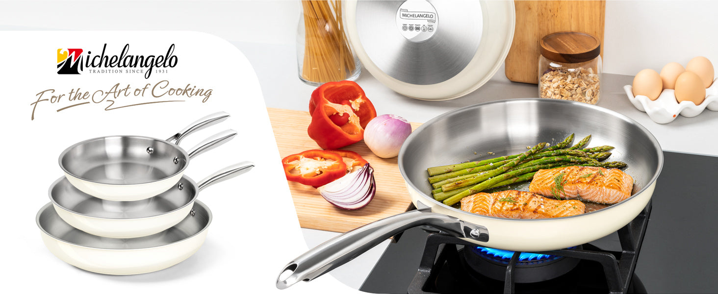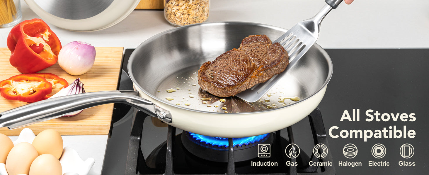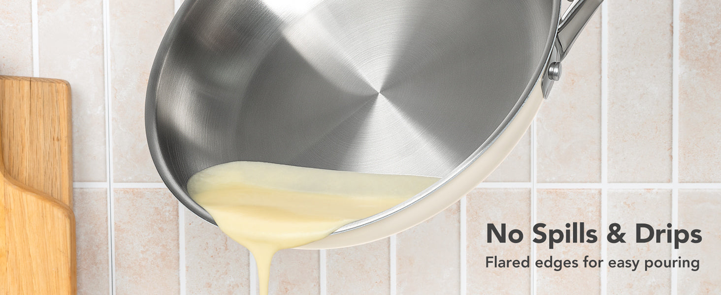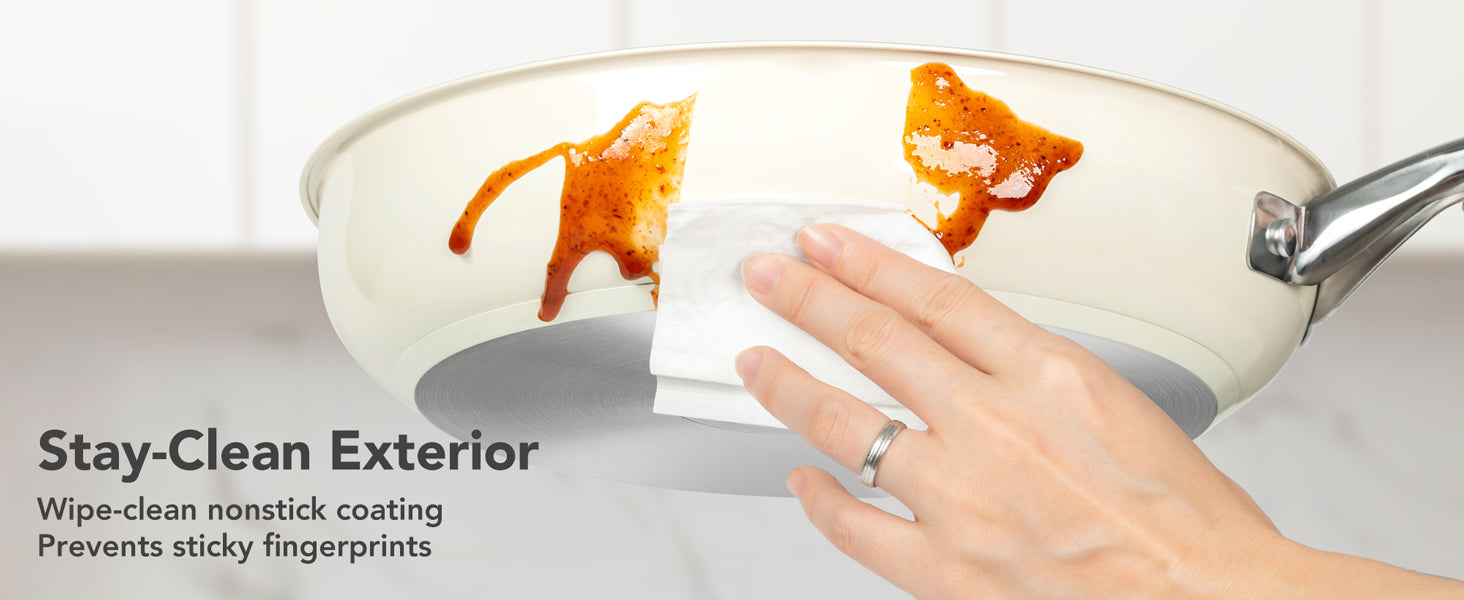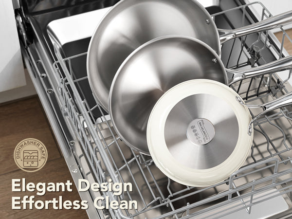 Easy-Clean Non-Stick Surface: Our updated stainless steel pans are crafted with a smooth exterior finish. This not only resists unsightly fingerprints but also maintains the pristine look of your cooking pans for years.