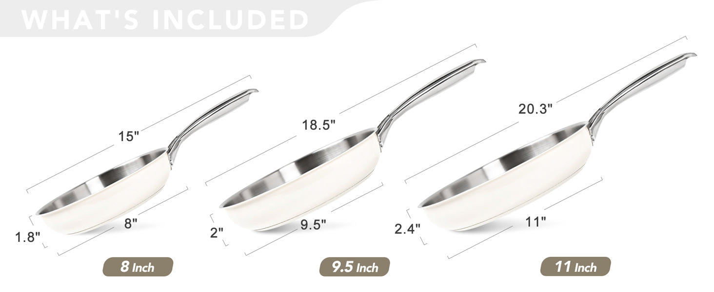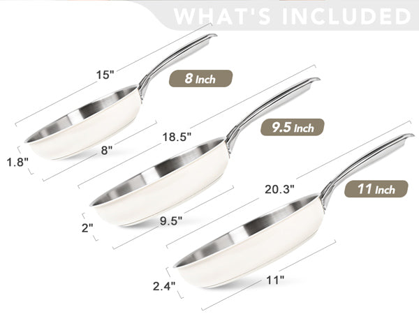Complete Set with Multi-Size Pans: The ultimate frying pan set includes 8", 9.5", and 11" skillets to handle everything from single servings to large family meals.