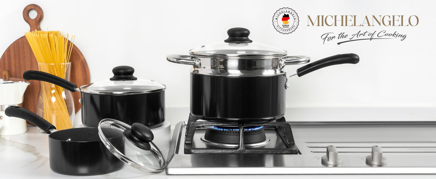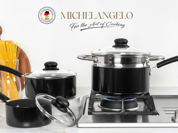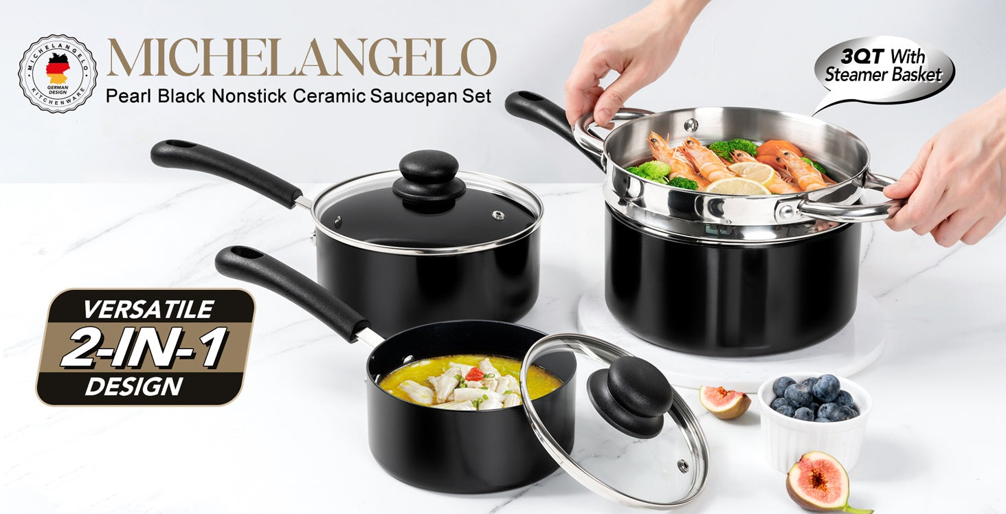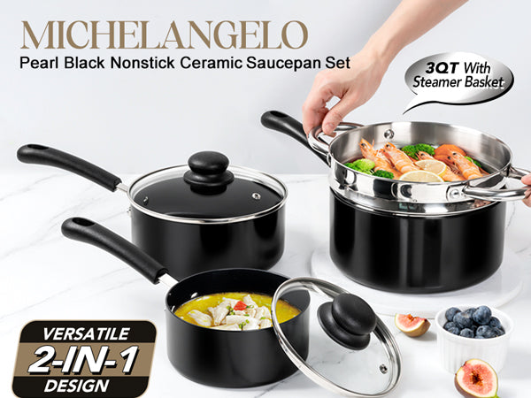 MICHELANGELO Nonstick 1QT & 2QT & 3QT Saucepan with Steamer, Black