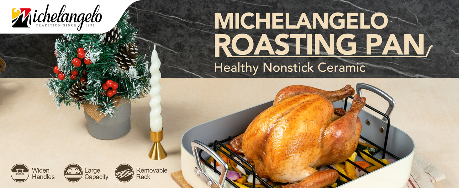 MICHELANGELO Nonstick Ceramic Roasting Pan with Rack,15 Inch x 13 Inch - Beige