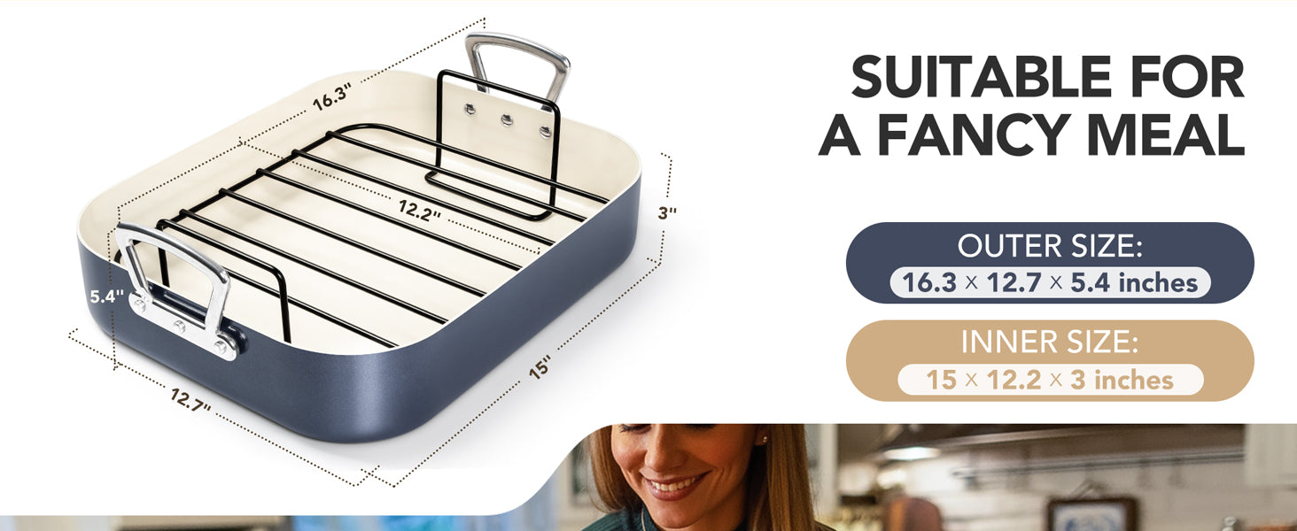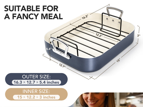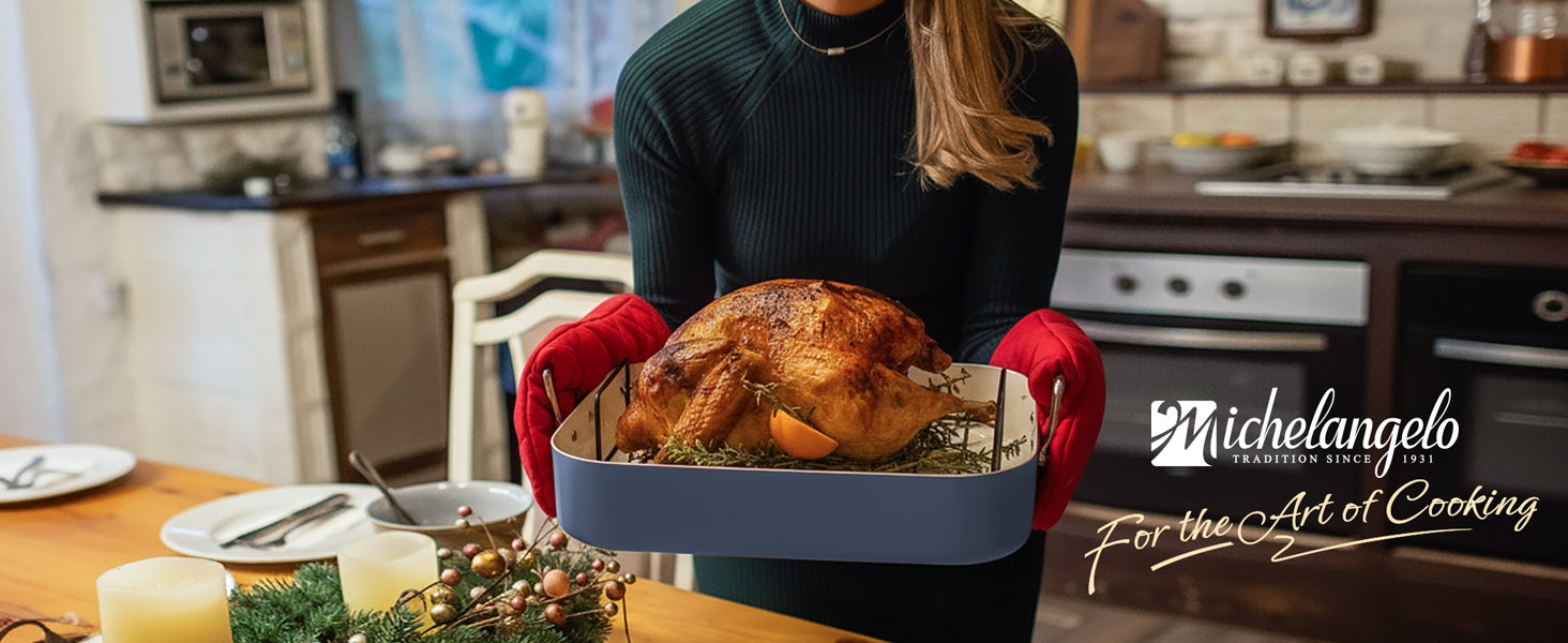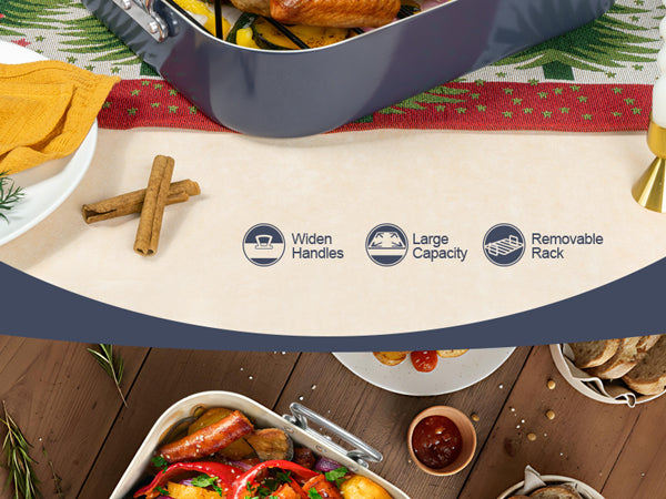 The Stainless Steel rack is designed to elevate the turkey, allowing even heat circulation for perfectly roasted results. It helps reduce grease by letting excess fat drip away, resulting in healthier and crispier dishes. Ideal for roasting whole chickens, turkey, and other meats, the rack ensures consistent cooking while preserving tenderness and flavor.
