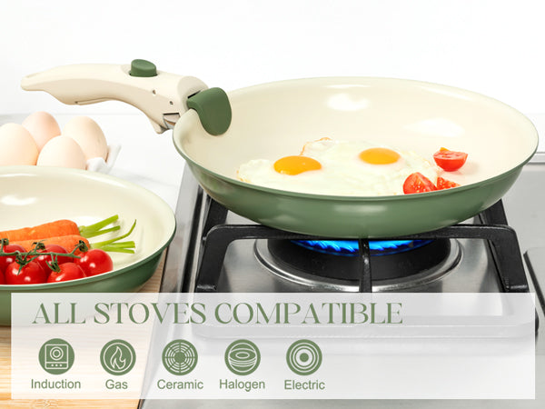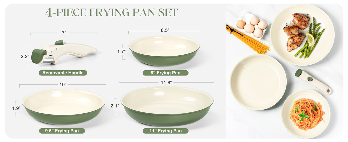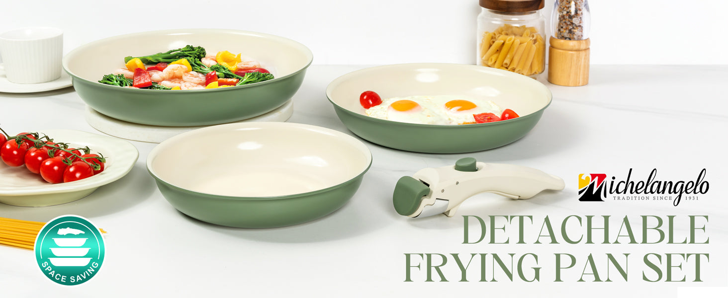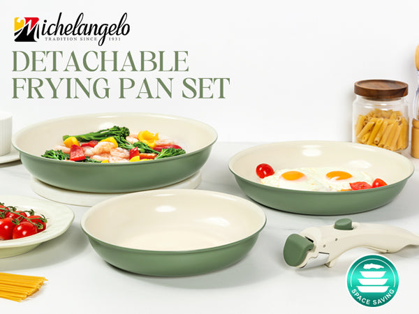 MICHELANGELO Nonstick Frying Pan Set Removable Handle, 8" 9.5" and 11" Frying Pans, Green