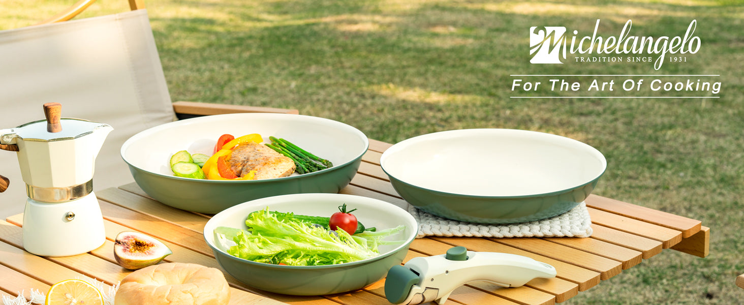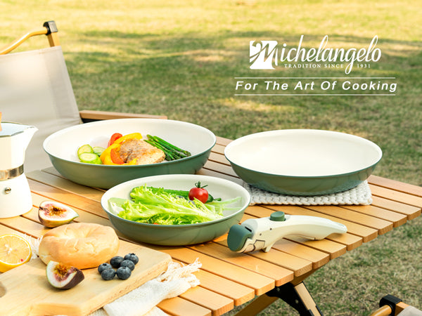 Enjoy cooking with just a click. With MICHELANGELO detachable handle, effortlessly switch your frying pans between stovetop, oven, table, and fridge. This versatile feature enhances overall convenience, making your skillet set effortlessly adaptable to various cooking and serving needs.