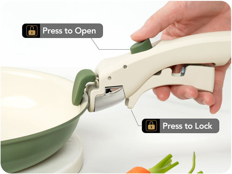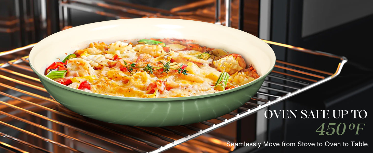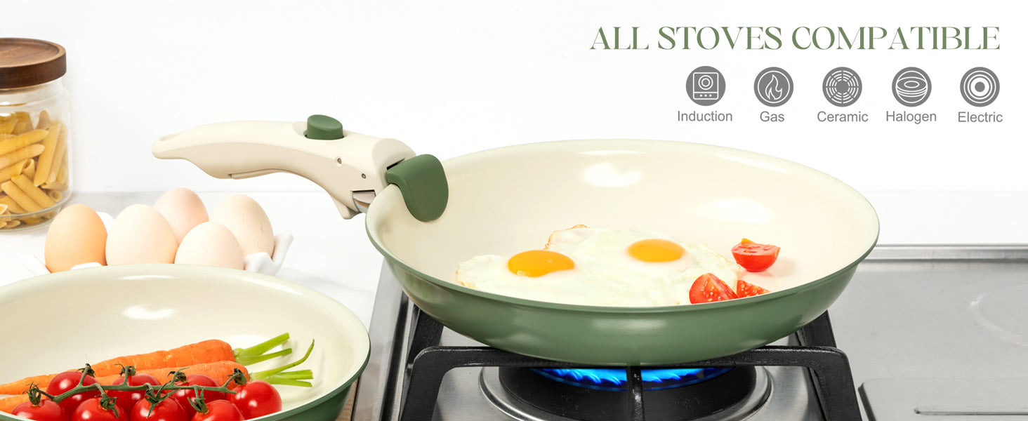 Convenience with Detachable Handle: Effortlessly switch your frying pan between stovetop, oven, table, and fridge by simply pushing back the detachable handle. This versatile feature enhances the overall convenience, making your skillet set effortlessly adaptable to various cooking and serving needs.