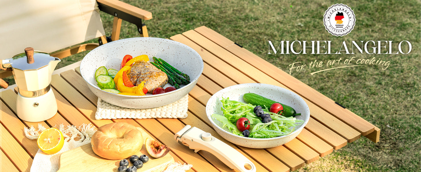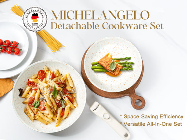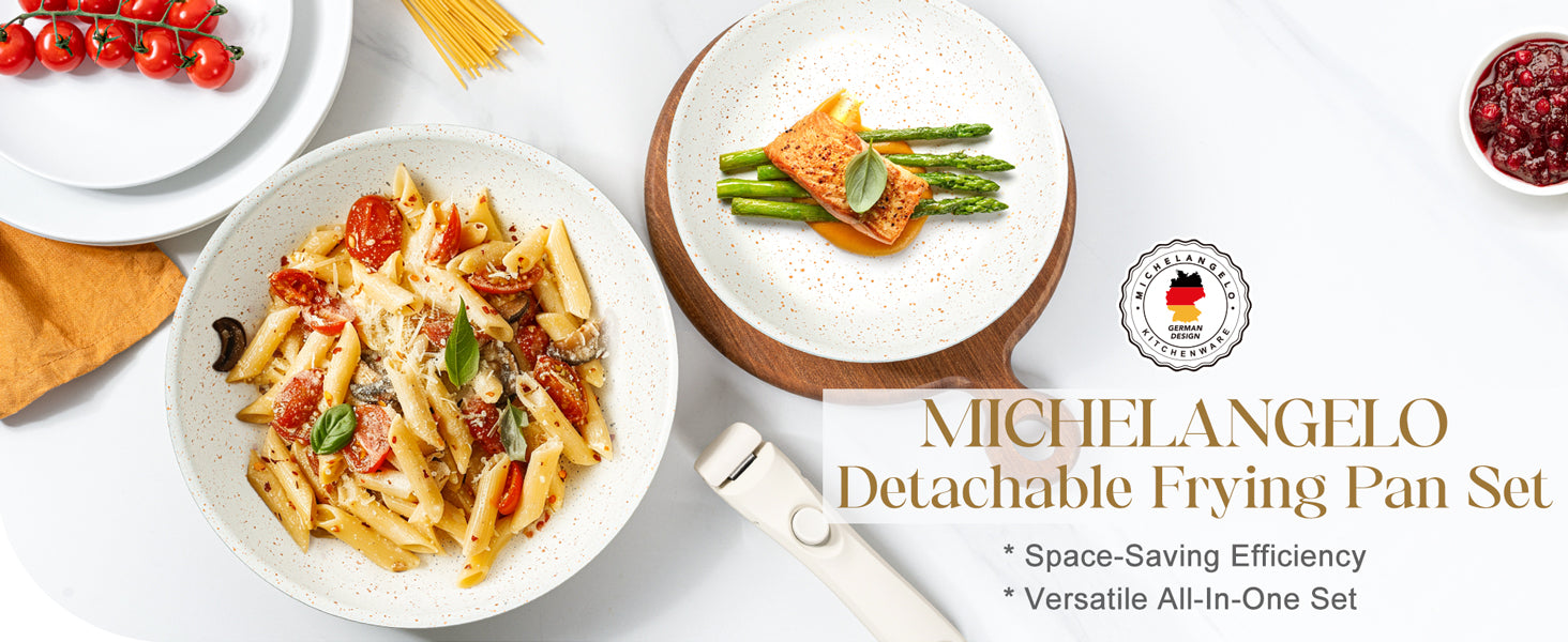 MICHELANGELO Nonstick Frying Pan Set Removable Handle, 8" and 10",White
