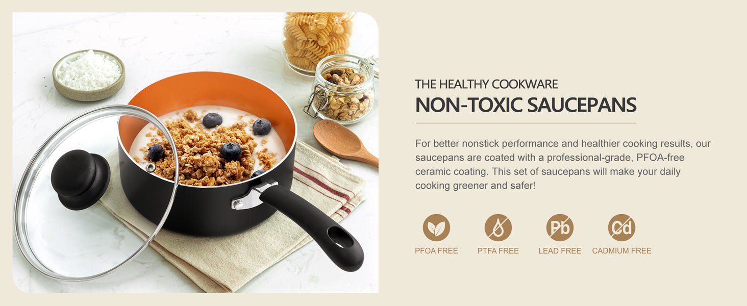 • Healthy Cooking - For safe and healthy cooking in your everyday life, our sauce pan is free from harmful chemicals such as APEO & PFOA.
