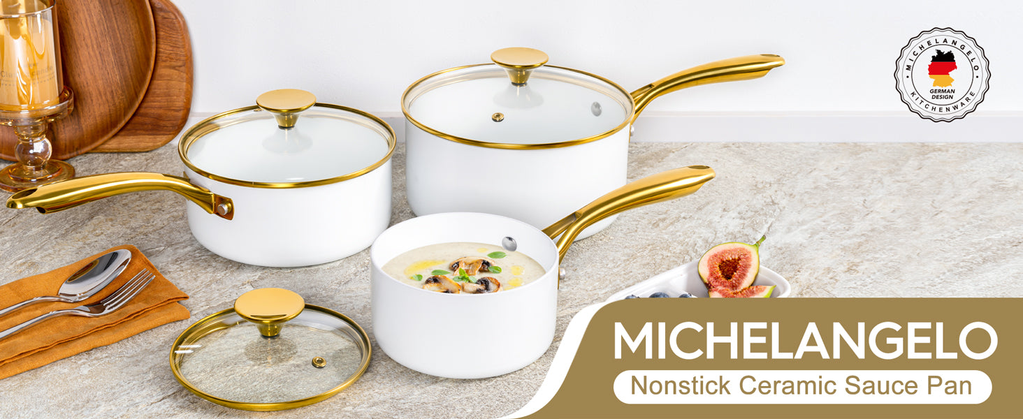 MICHELANGELO Nonstick Saucepan with Lid 1Qt & 2Qt & 3Qt