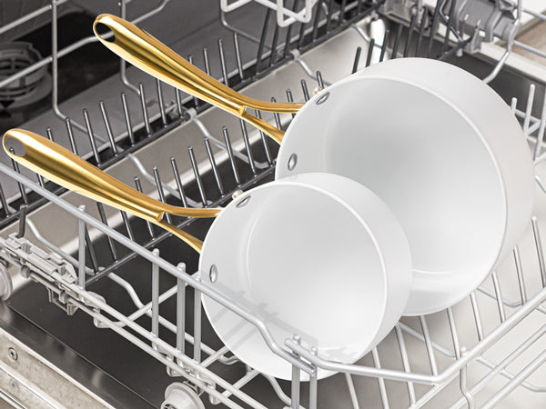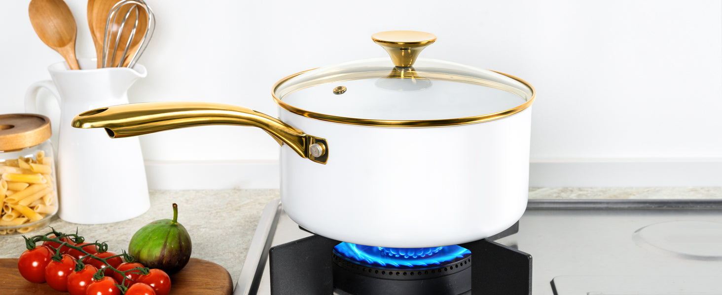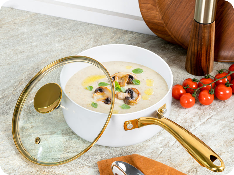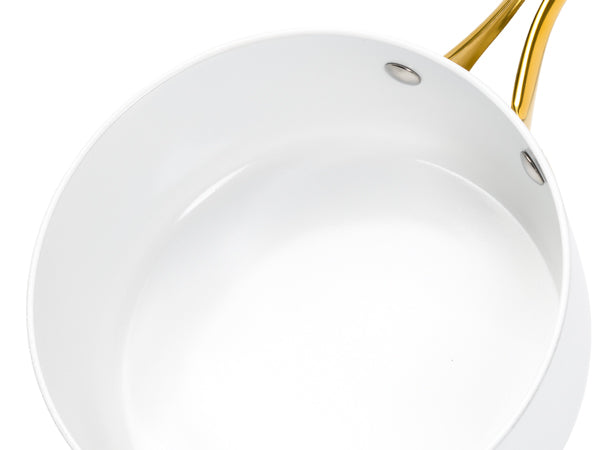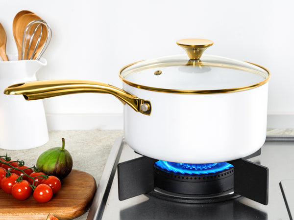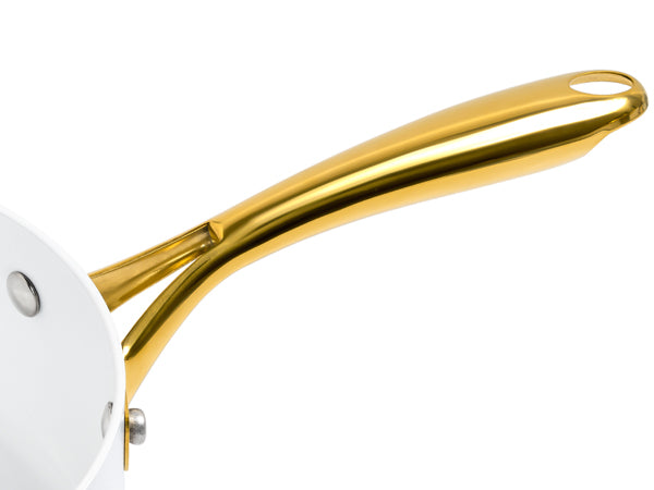• Stunning Kitchen Artwork – Bring a touch of elegance to your kitchen with this sleek ceramic saucepan, complete with beautiful gold stainless steel handles.