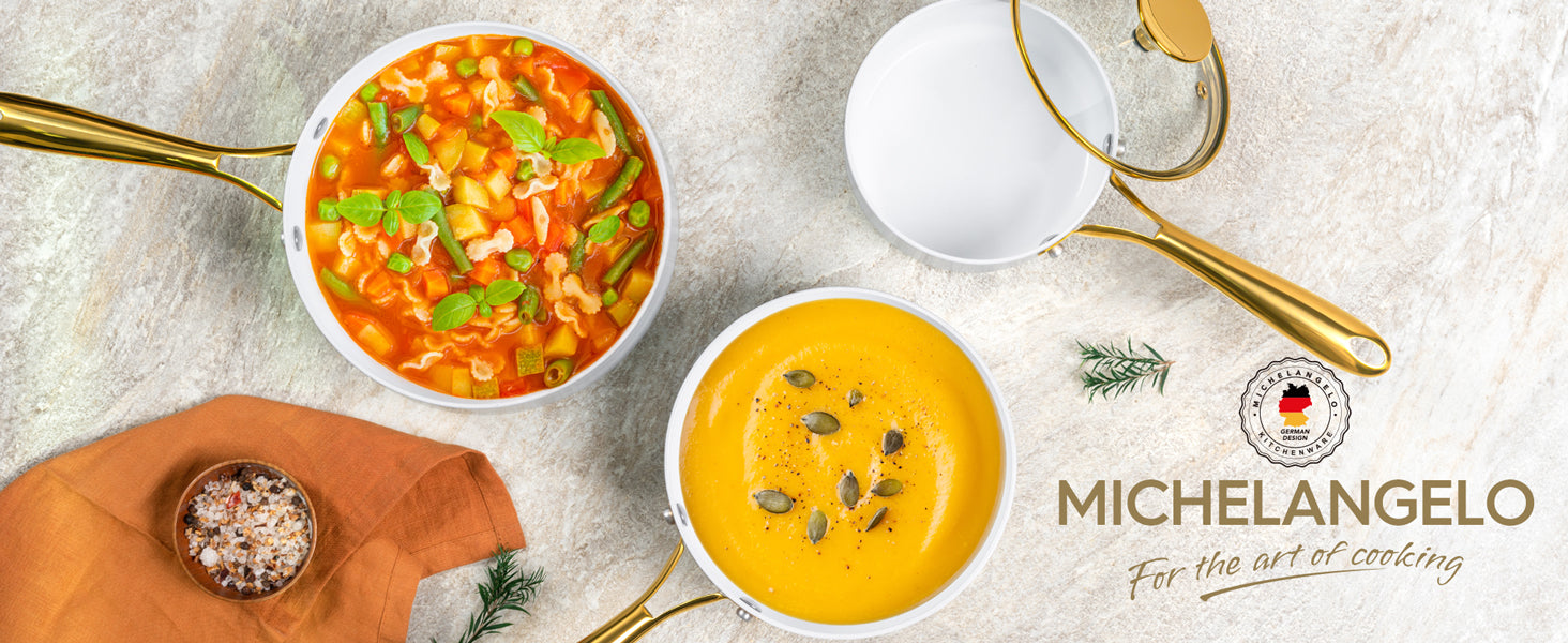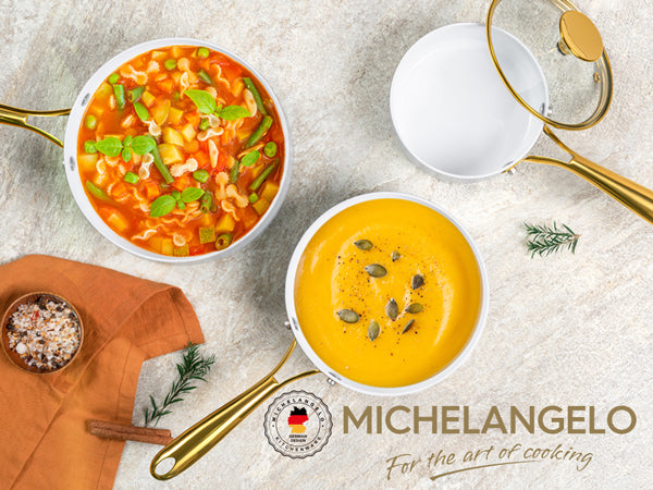 MICHELANGELO nonstick saucepan designed with stainless steel handle provides a secure , solid, comfortable grip for easy pouring and stirring.