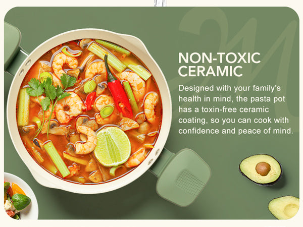 • Toxic-Free Ceramic Nonstick Pot – Eco-friendly ceramic coating resists scratches, avoids chemical fumes. Food slides off effortlessly—5x easier cleaning.
