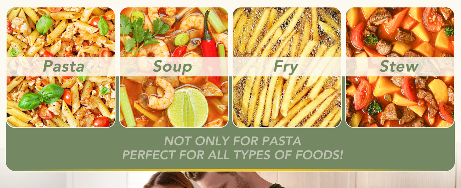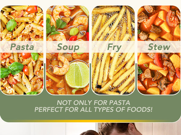 • Durable Multipot – Multi-use cooking pot replaces pasta pots & stockpots & fryer pots & saucepans. Braise, boil, fry—1 pot does it all.