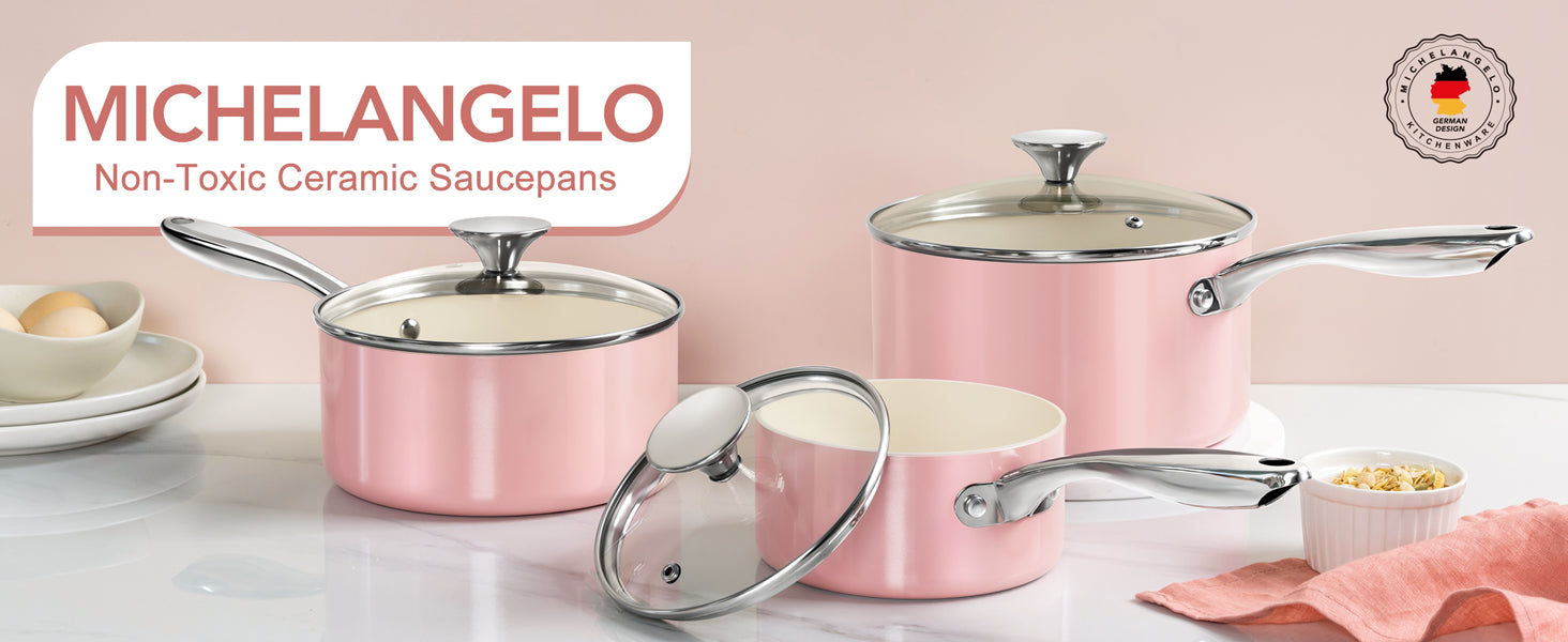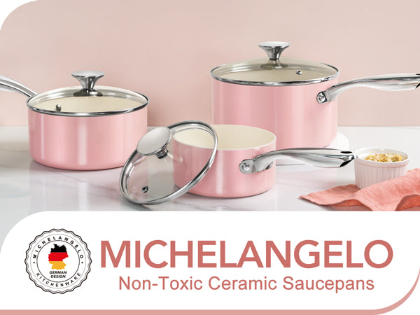 MICHELANGELO Sauce Pan Sets, Ceramic Saucepans with Lid,3Qt