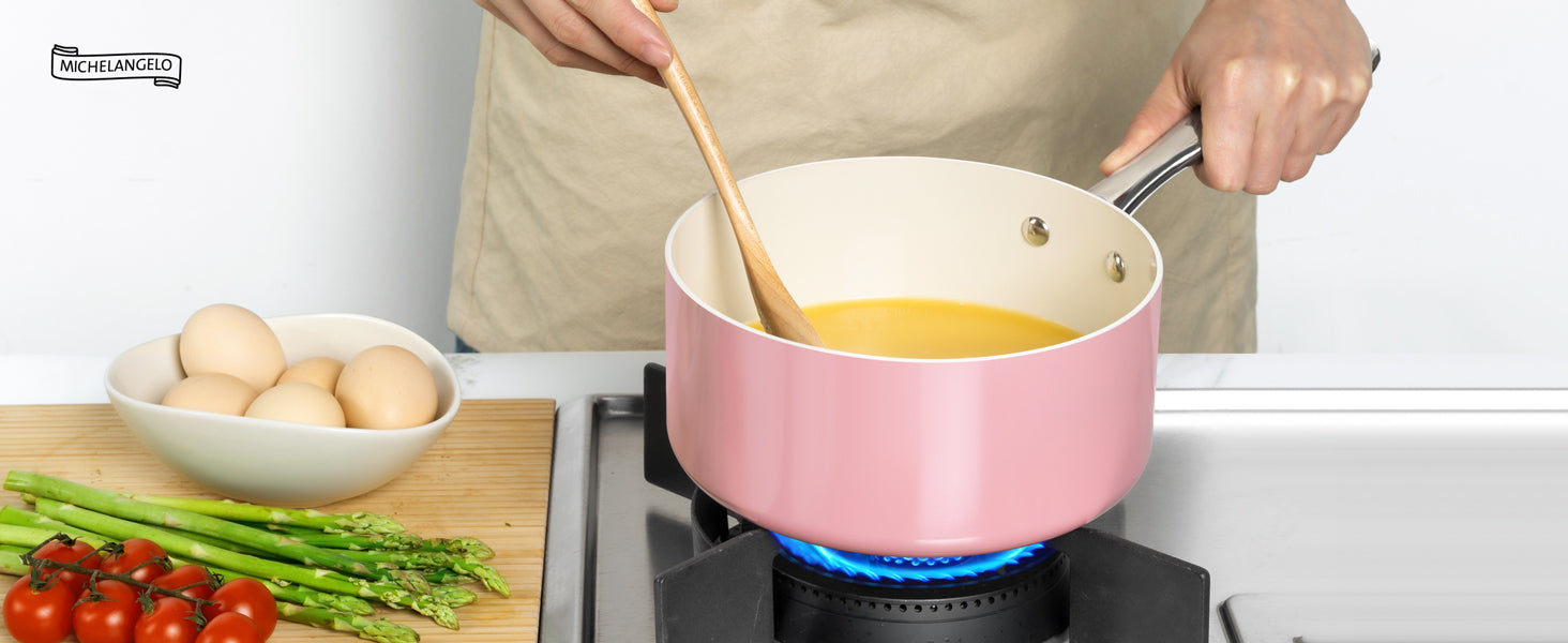 • Healthy for Cooking - MICHELANGELO sauce pan is made with non toxic coating, ensuring a healthy cooking experience for your family. Say goodbye to harmful chemicals in your meals!