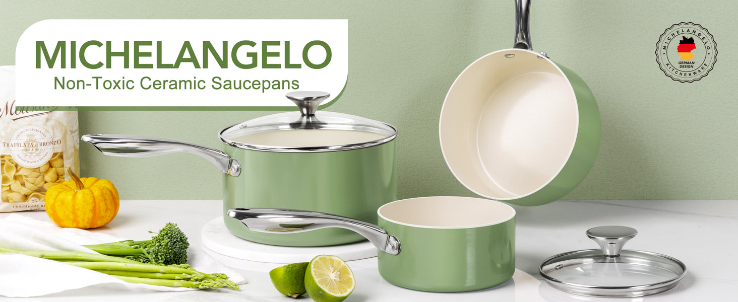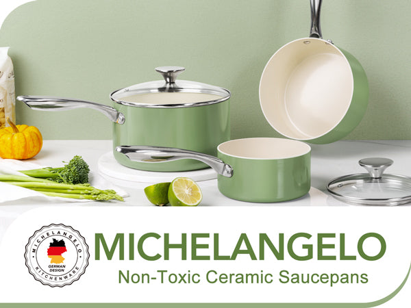 MICHELANGELO Sauce Pan Sets, Ceramic Saucepans with Lid 3QT