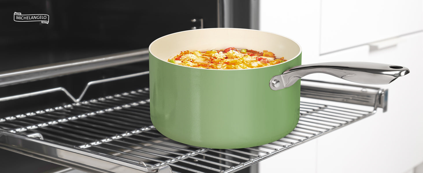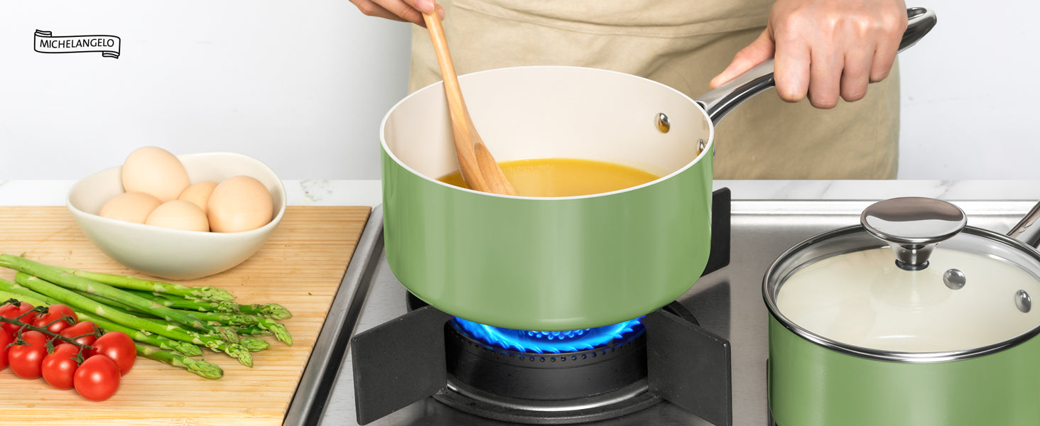 • Healthy Cooking - MICHELANGELO sauce pan is made with non-toxic coating, ensuring a healthy cooking experience for your family. Say goodbye to harmful chemicals such as PTFE, PFOA, lead and cadmium!