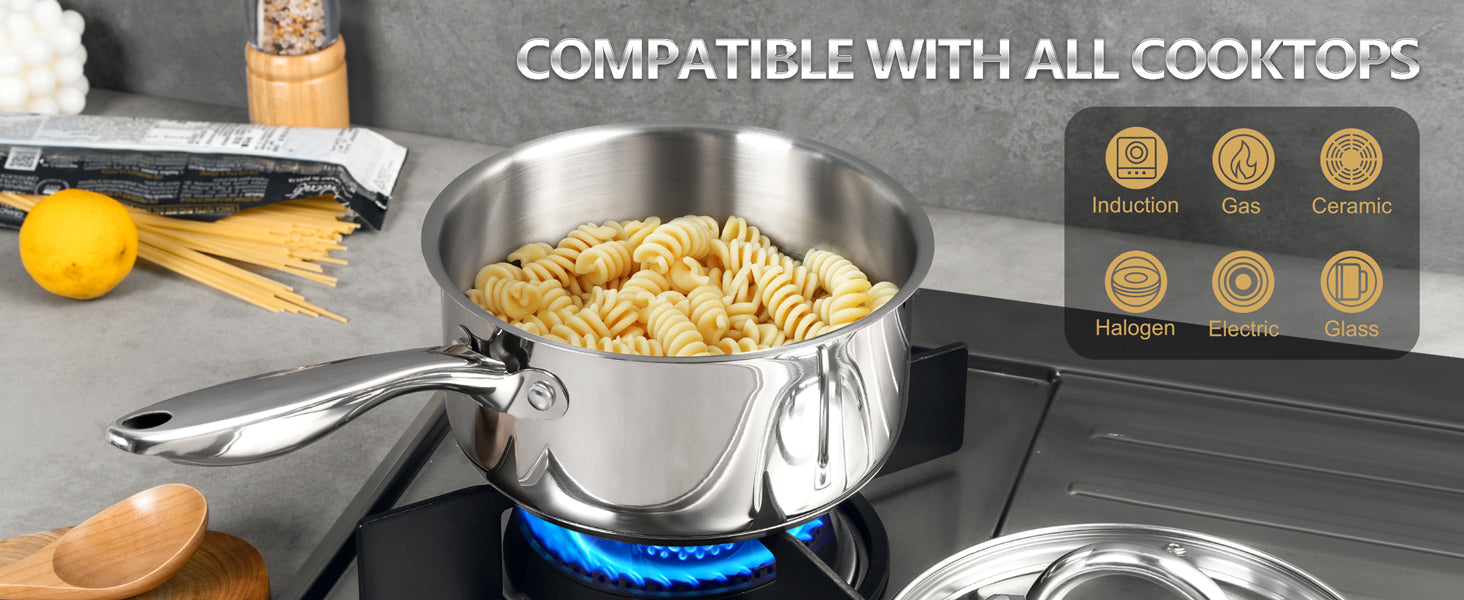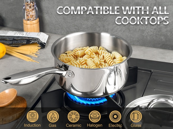 • EFFORTLESS CLEANUP: The stainless steel construction makes the 1.5qt saucepan easy to clean, and they are typically dishwasher safe for added convenience.