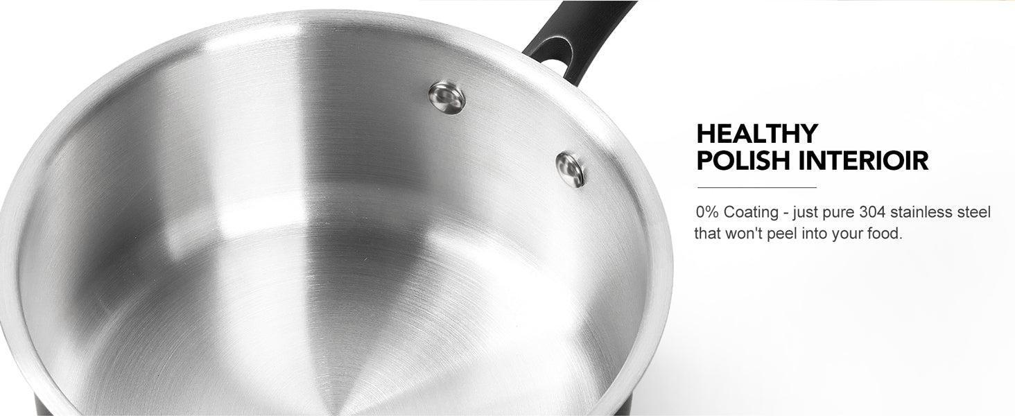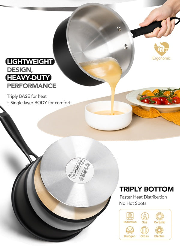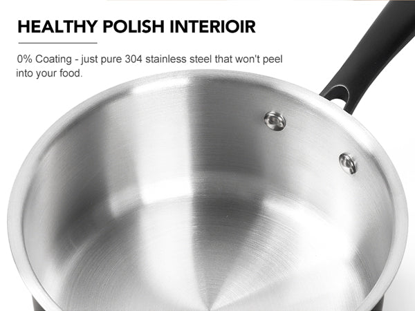 • Premium Stainless Steel Construction - Our stainless steel saucepan features a durable 304 stainless steel pot body with a triply base for even heat distribution, perfect for precise cooking.