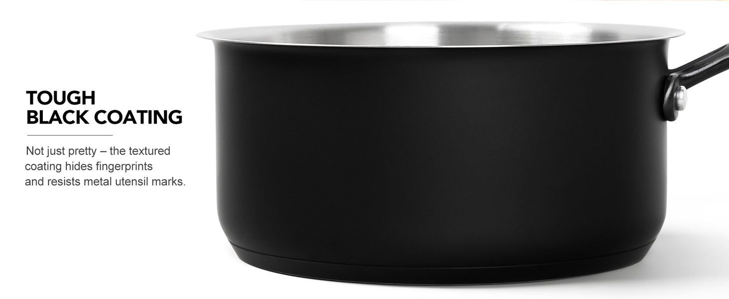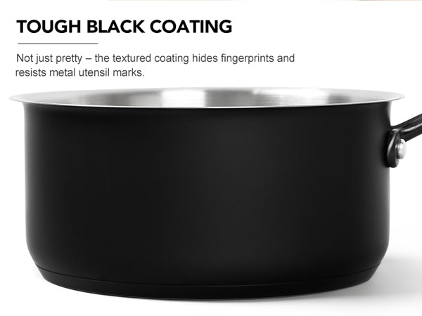 • Sleek Black Exterior - The modern matte black exterior adds a stylish touch to your kitchen, making this stainless steel sauce pan both functional and aesthetically pleasing.