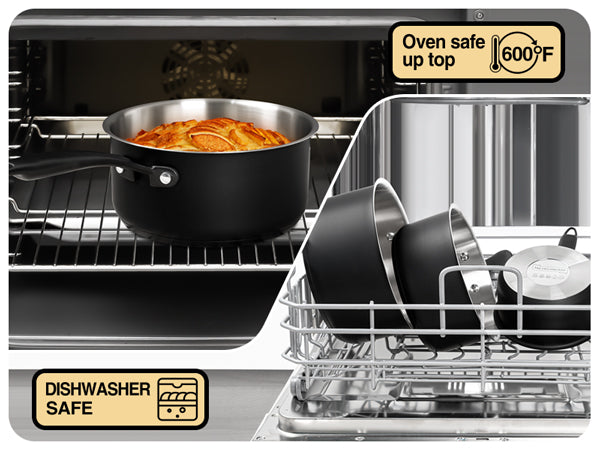 • Easy to Clean & Maintain - While dishwasher-safe, hand washing is recommended to preserve the saucepan set's sleek black coating and long-lasting performance.