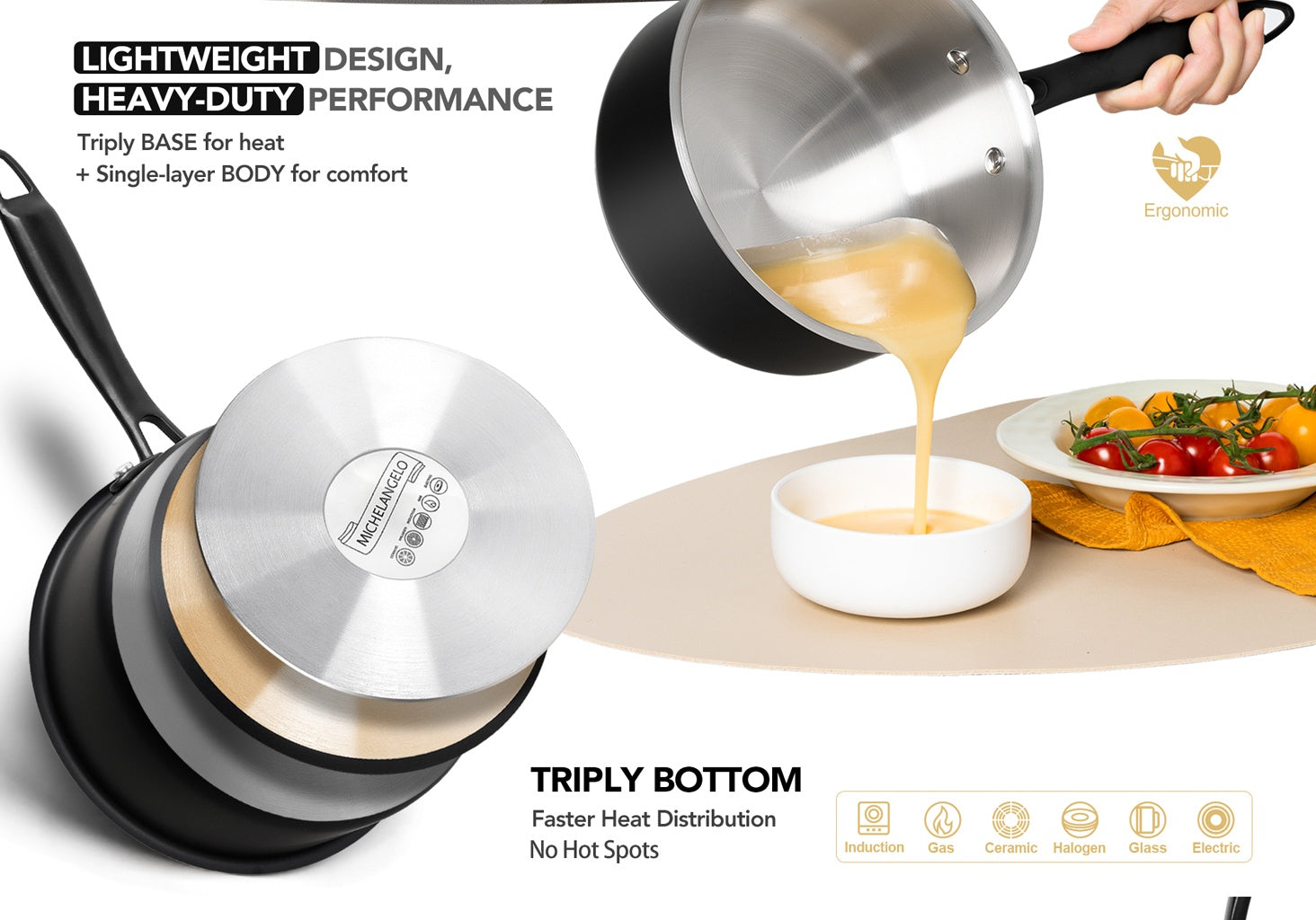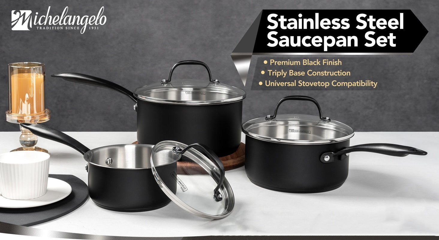MICHELANGELO Stainless Steel Saucepan Set,Tiply-Base Sauce Pan with Lids-1QT & 2QT & 3QT