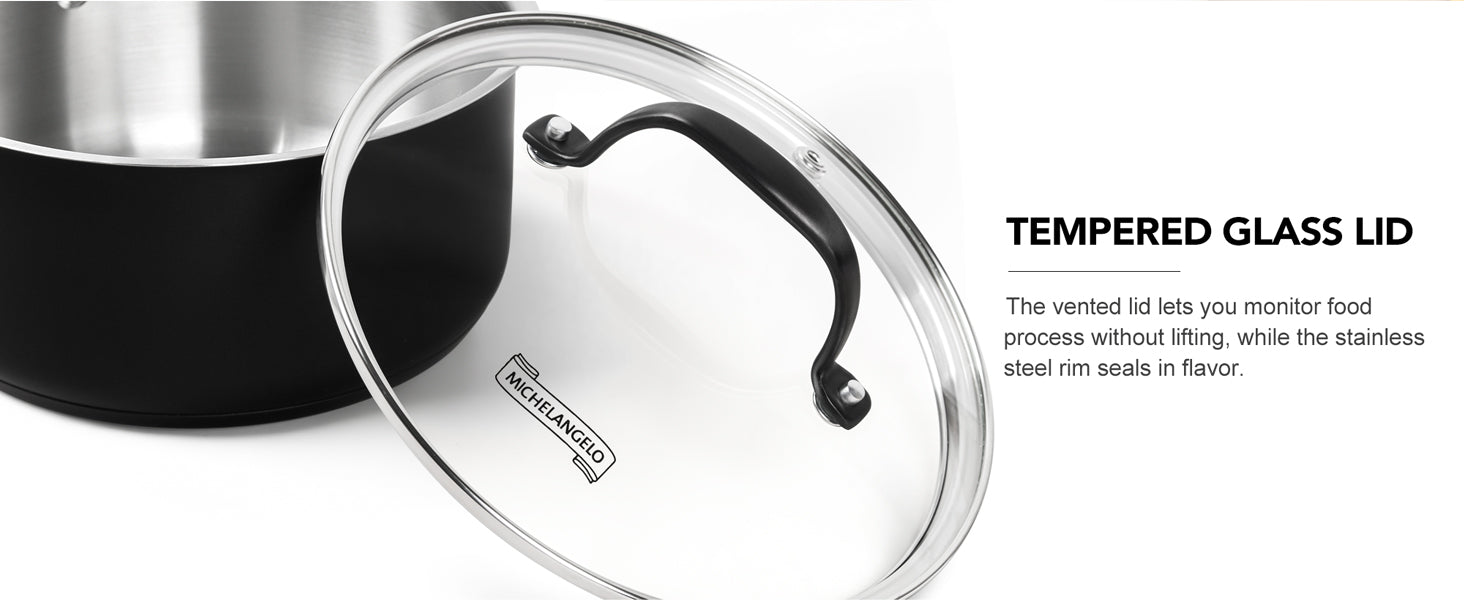 • Vented Glass Lid - The saucepans comes with three transparent tempered glass lids and a steam vent, allowing you to monitor cooking without losing heat.