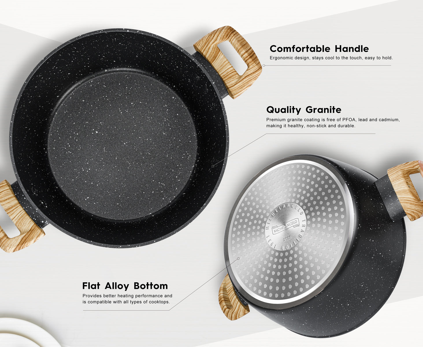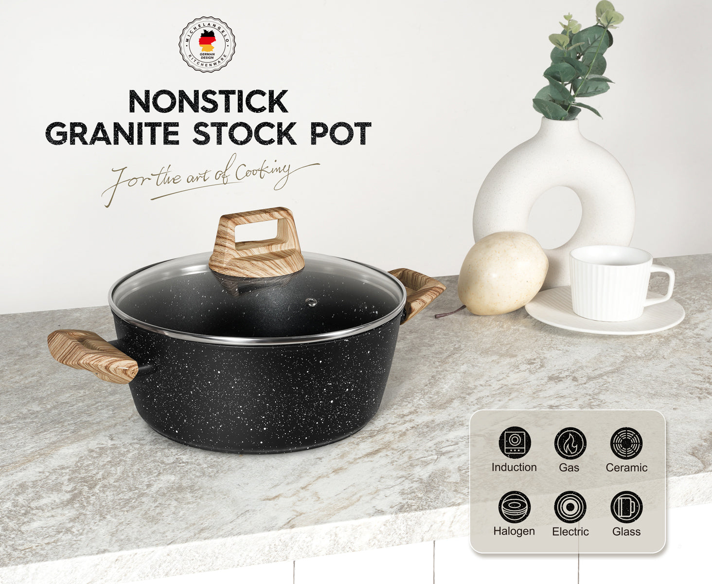 • MULTI-PURPOSE - The granite pot would satisfy your need for more, great for seafood, curry, pasta, vegetables or simmering stocks and soups. Suitable for all cooktops, including induction, gas, ceramic, electric.