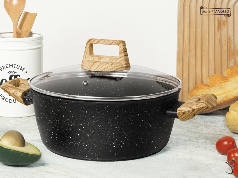 MICHELANGELO Stock Pot with Lid, 4.3 Quart Cooking Pot , Granite Nonstick Pot