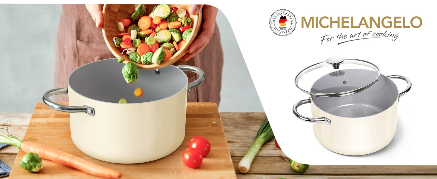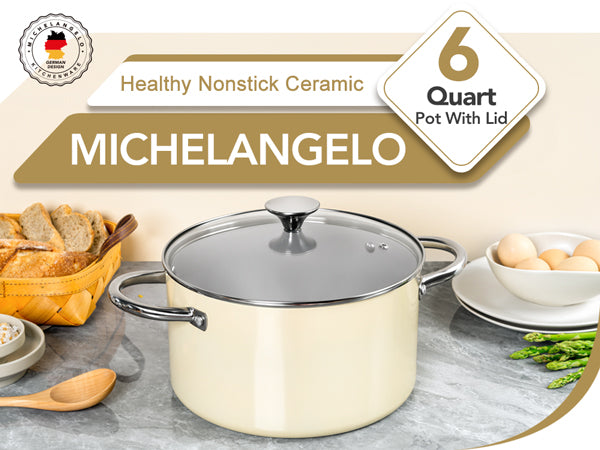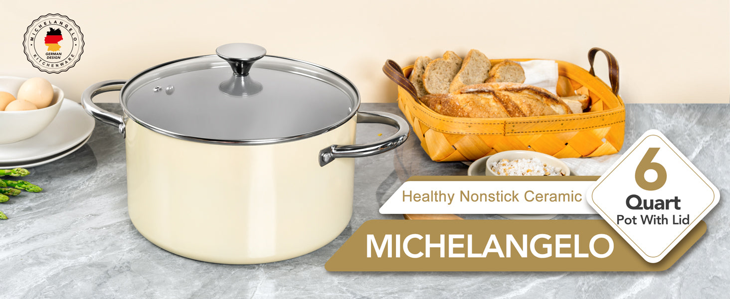 MICHELANGELO Stock Pot with Lid, 6 Quart Nonstick Cooking Pot, Ceramic Soup Pot