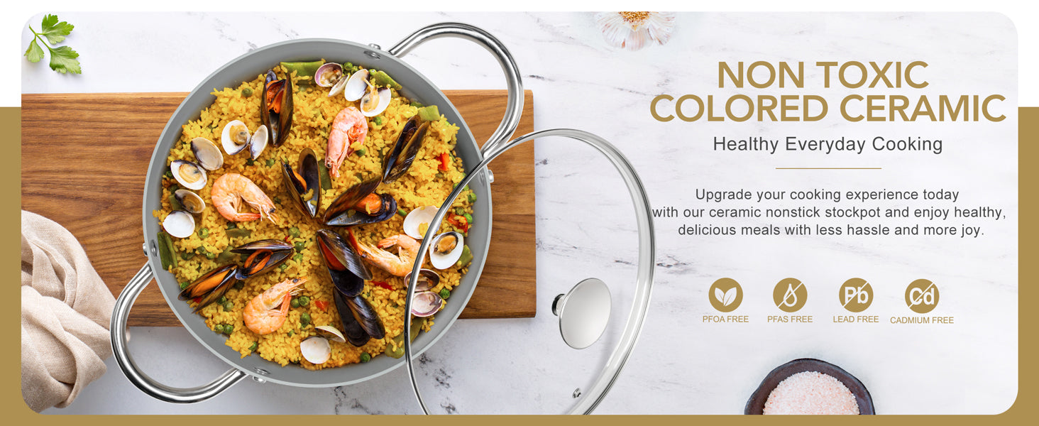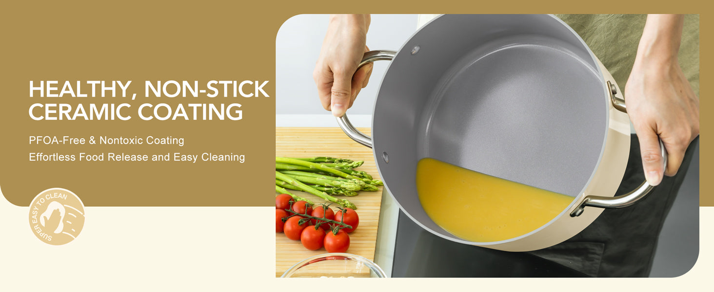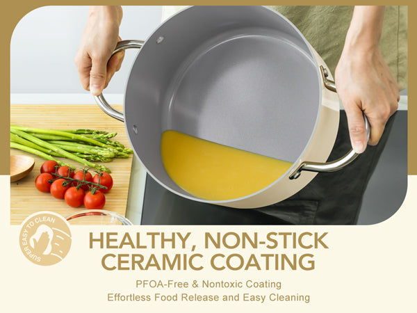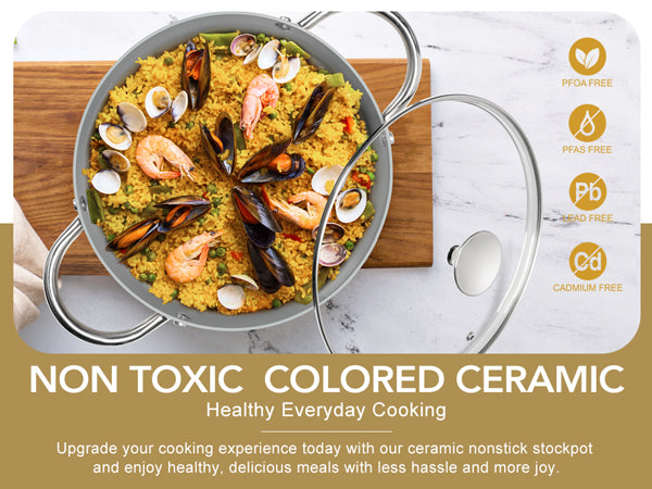 • Healthy & Non-Toxic Cooking: Our ceramic-coated stockpot is free of PFOA and PFOS, ensuring no harmful substances are released during cooking, allowing you to prepare meals with peace of mind for your family.
