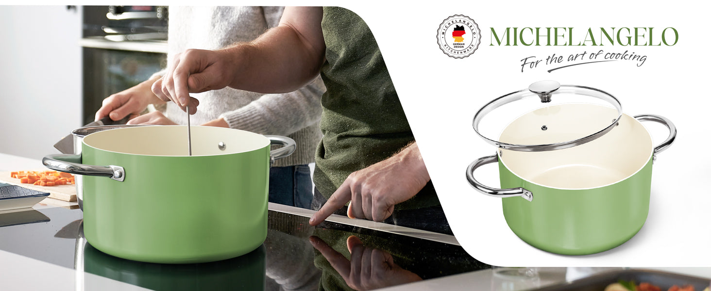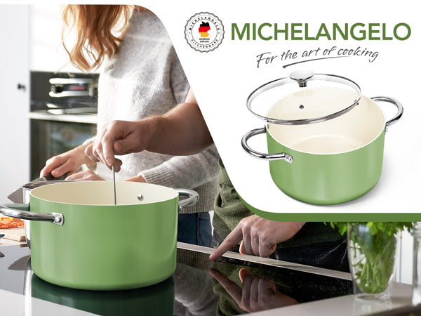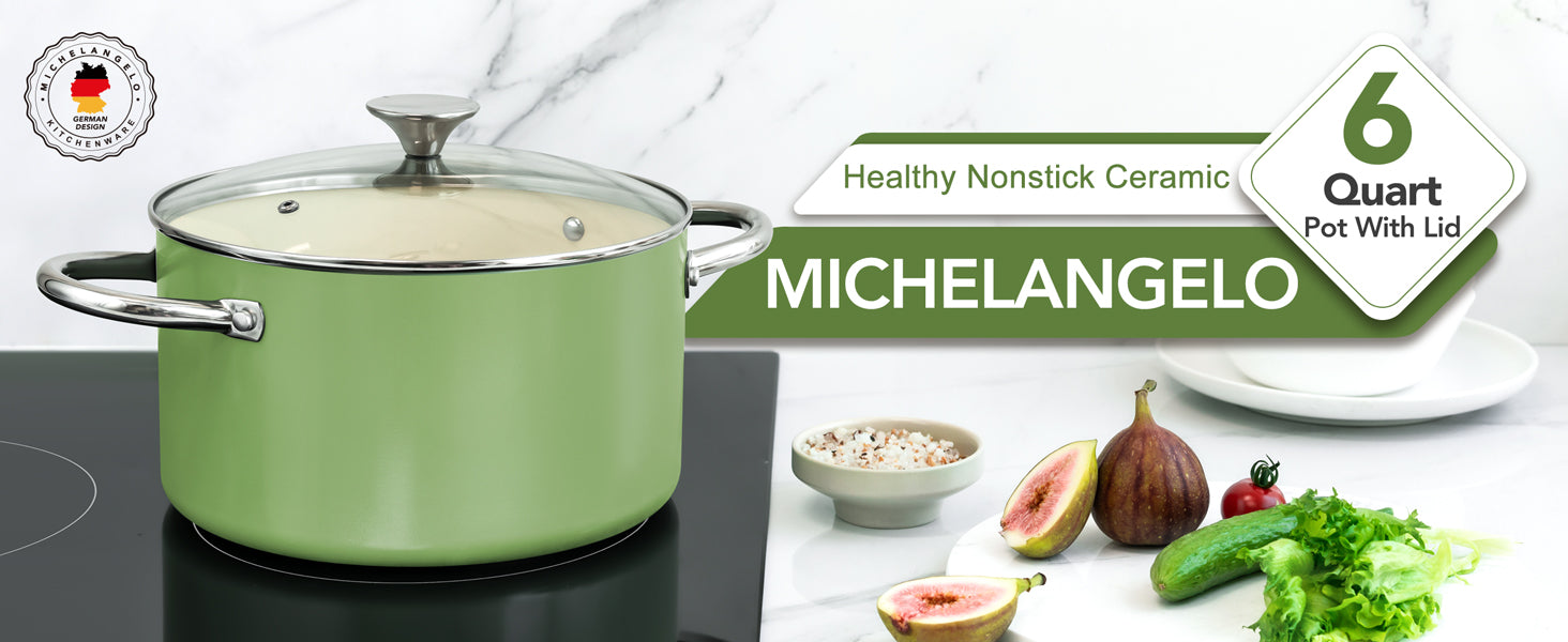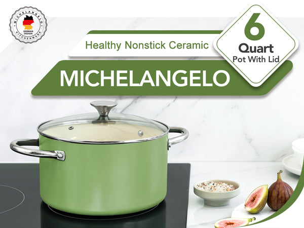 MICHELANGELO Stock Pot with Lid, 6 Quart Nonstick Cooking Pot, Ceramic Soup Pot