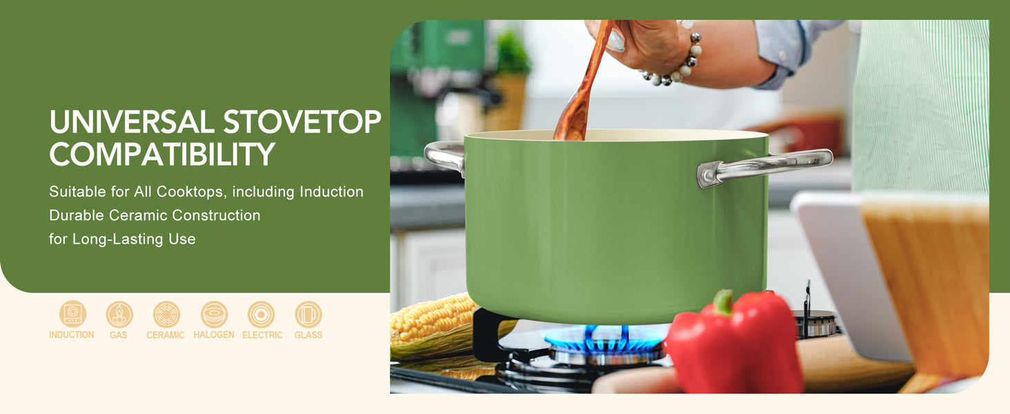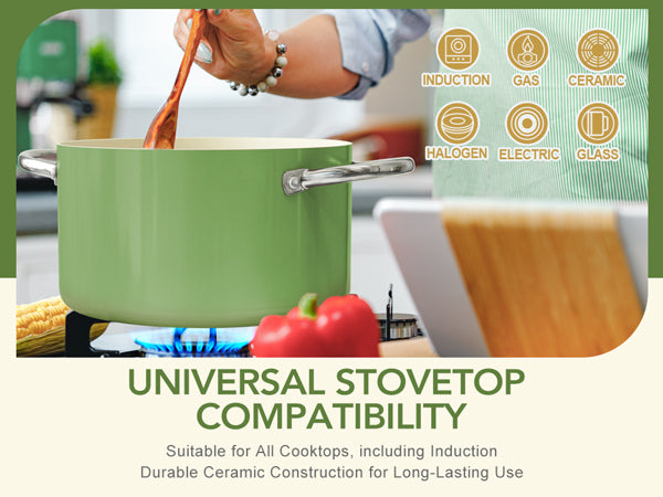 • Versatile Usage: Available in 5qt and 6qt sizes, the ceramic pot is suitable for various cooking needs and methods, including boiling, stewing, simmering, and sautéing. It is also compatible with all stovetops including induction.