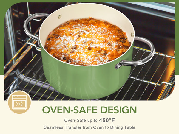 • Even Heat Distribution: The aluminum body provides superior heat conductivity, while the tri-ply bottom distributes heat quickly and evenly for enhanced flavor and texture. This nonstick pot is oven-safe up to 450°F for versatile stovetop-to-oven cooking.