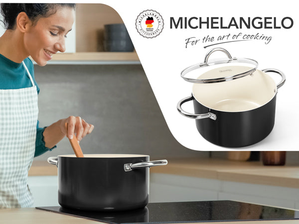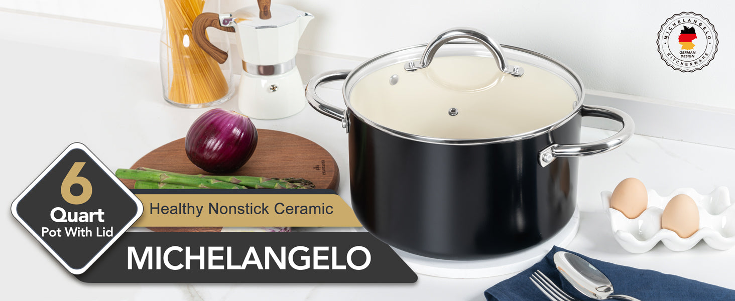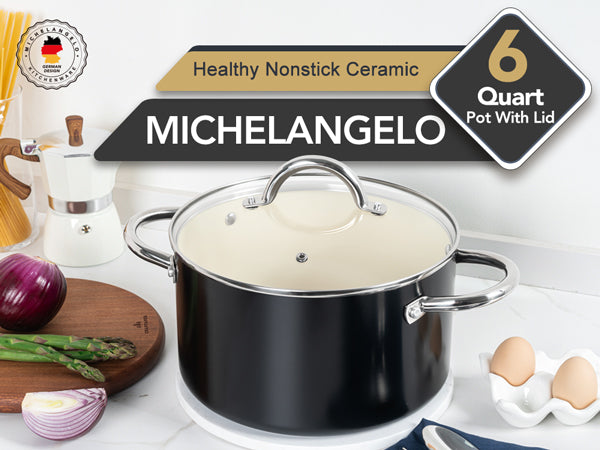 MICHELANGELO Stock Pot with Lid, Nonstick 6 Quart Soup Pot with Ceramic Coating, Black