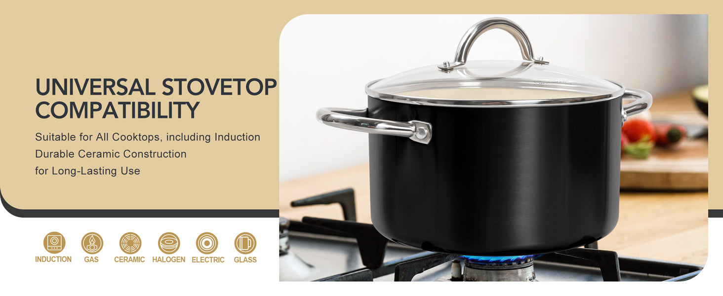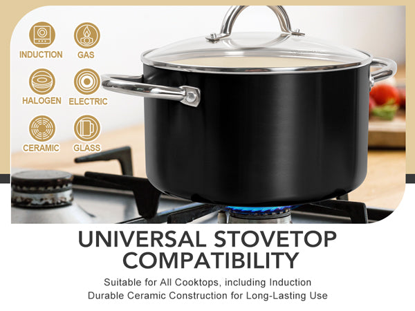 • Versatile Usage: Available in 5qt and 6qt sizes, the ceramic pot is suitable for various cooking needs and methods, including boiling, stewing, simmering, and sautéing. It is also compatible with all stovetops including induction.