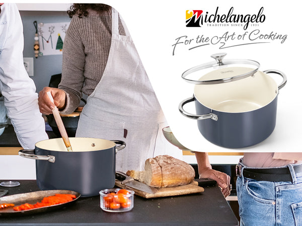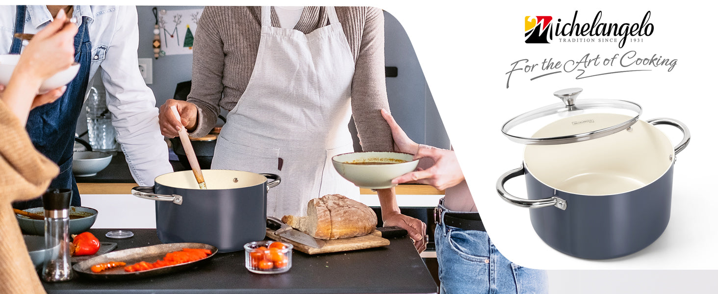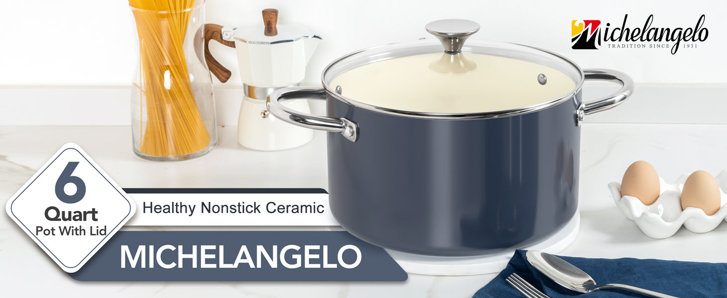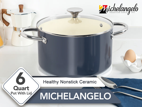 MICHELANGELO Stock Pot with Lid, Nonstick 6 Quart Soup Pot with Ceramic Coating, Haze blue