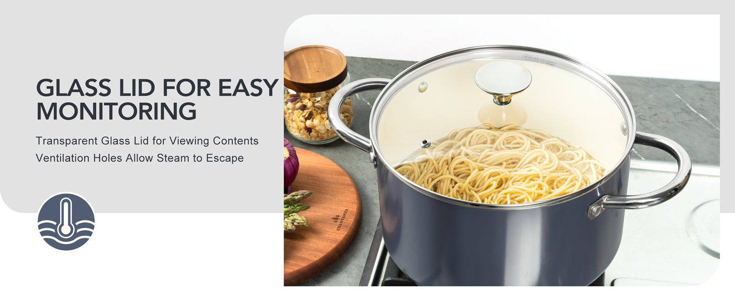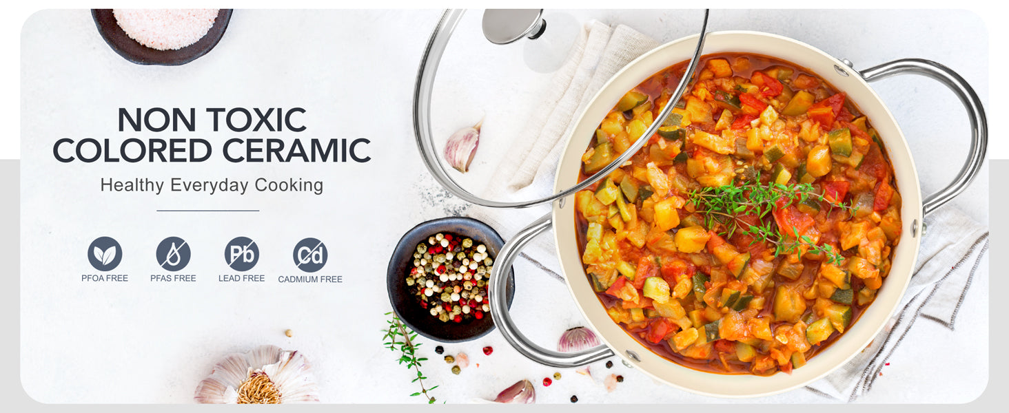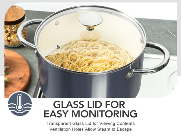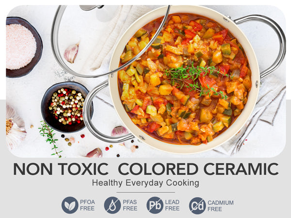 Healthy & Non-Toxic Cooking: Our ceramic-coated stockpot is free of PFOA and PFOS, ensuring no harmful substances are released during cooking, allowing you to prepare meals with peace of mind for your family.