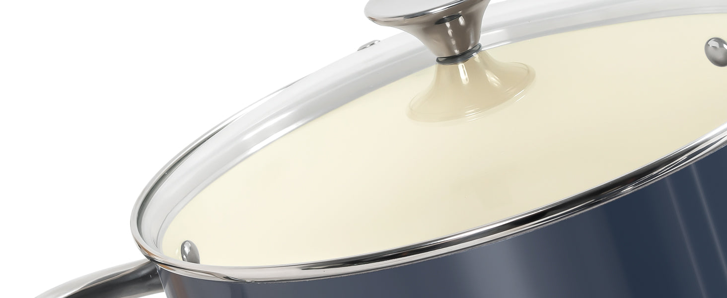 Convenient Glass Lid: The tempered glass lid is heat-resistant and impact-resistant for safe cooking. The clear design allows you to monitor food without lifting the lid, preventing heat loss and ensuring nutrients are retained.
